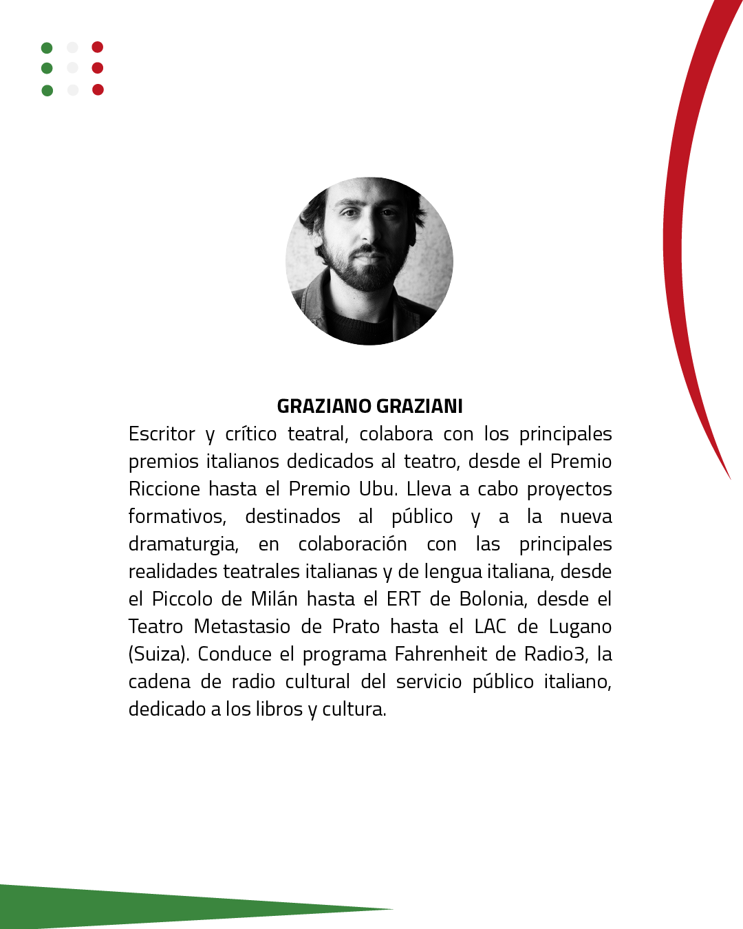 Un incontro con Chiara Arrigoni, giovane drammaturga italiana che presenterà il suo metodo e l’immaginario della sua scrittura teatrale, in costante dialogo tra gli archetipi narrativi universali (il mito, la fiaba, il folklore) e la contemporaneità più estrema, ispirandosi alla cronaca e all’attualità. Tra i temi ricorrenti nell’immaginario drammaturgico di Chiara Arrigoni figurano: il mondo del lavoro, le disuguaglianze sociali, il corpo, la riscrittura dei rapporti di genere da una prospettiva femminista, il capitalismo come habitat che limita la possibilità di felicità dell’essere umano e, in generale, come queste dinamiche globali si riflettono sull’individuo. La sua presentazione sarà preceduta da un’introduzione panoramica dedicata alla scrittura teatrale in Italia, a cura di Graziano Graziani, giornalista e drammaturgo italiano.